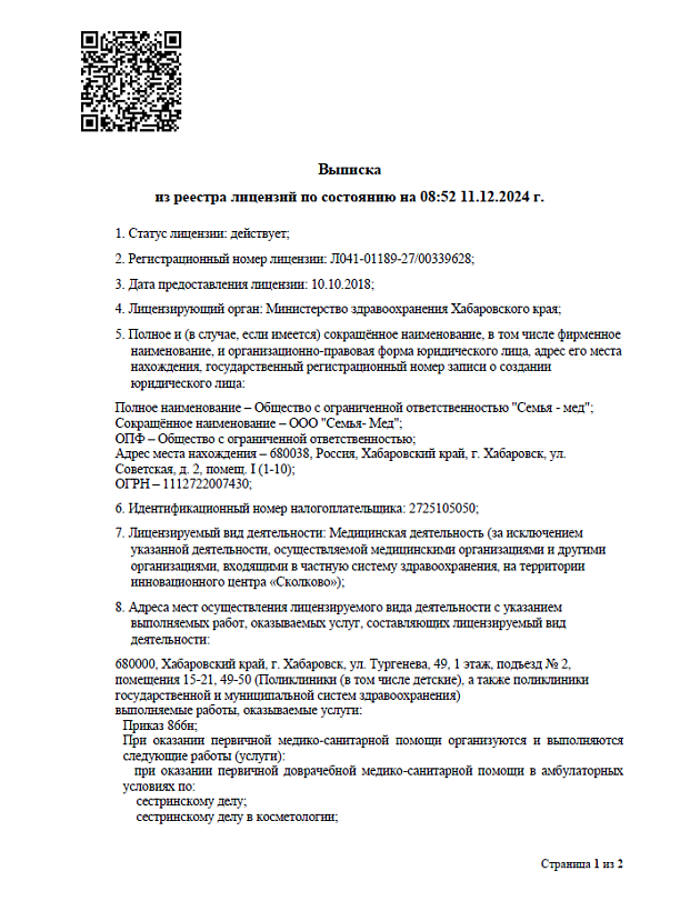 Общество с ограниченной ответственностью «Семья–МЕД»