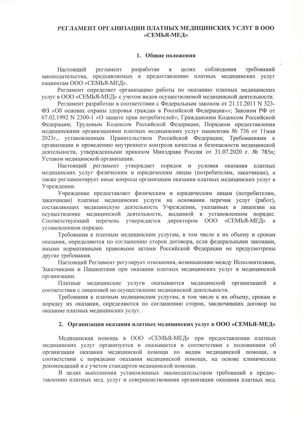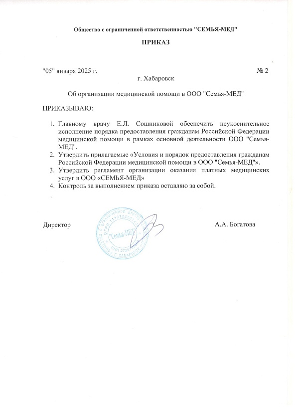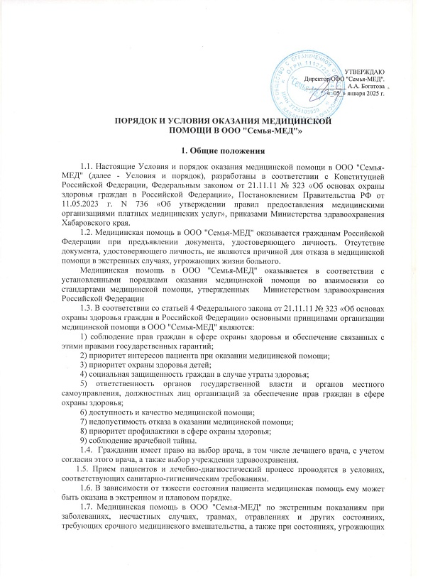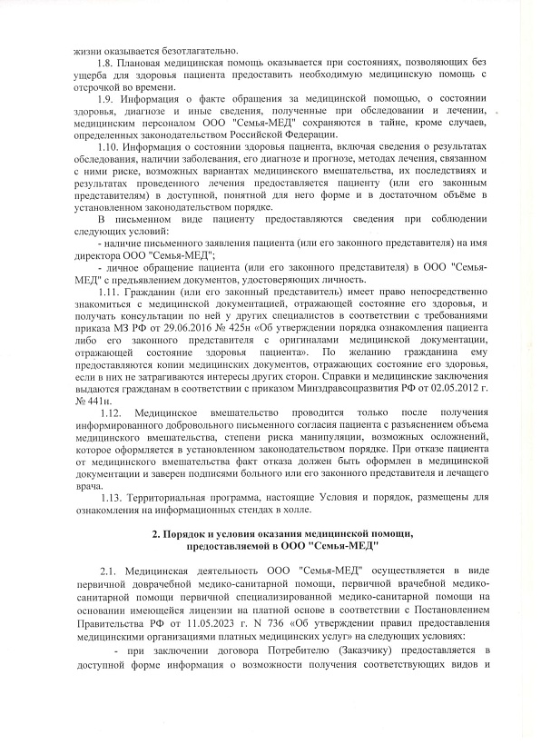 Порядок и условия оказание медицинской помощи в ООО "Семья-Мед"